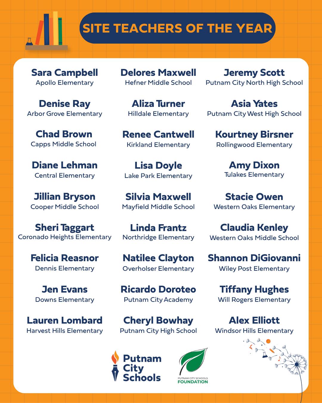 Congratulations to Putnam City's 2025 Site Teachers of the Year! |