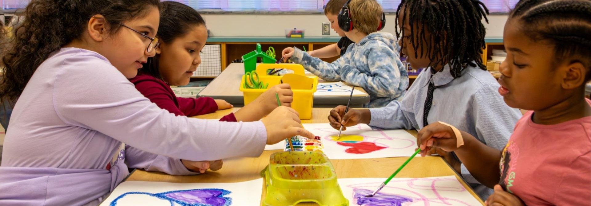 Ms. Dodson's second grade art class at Ralph Downs Elementary created one-of-a-kind designs! By arranging common shapes and painting the spaces in between, students explored how small ideas can turn into something new. |