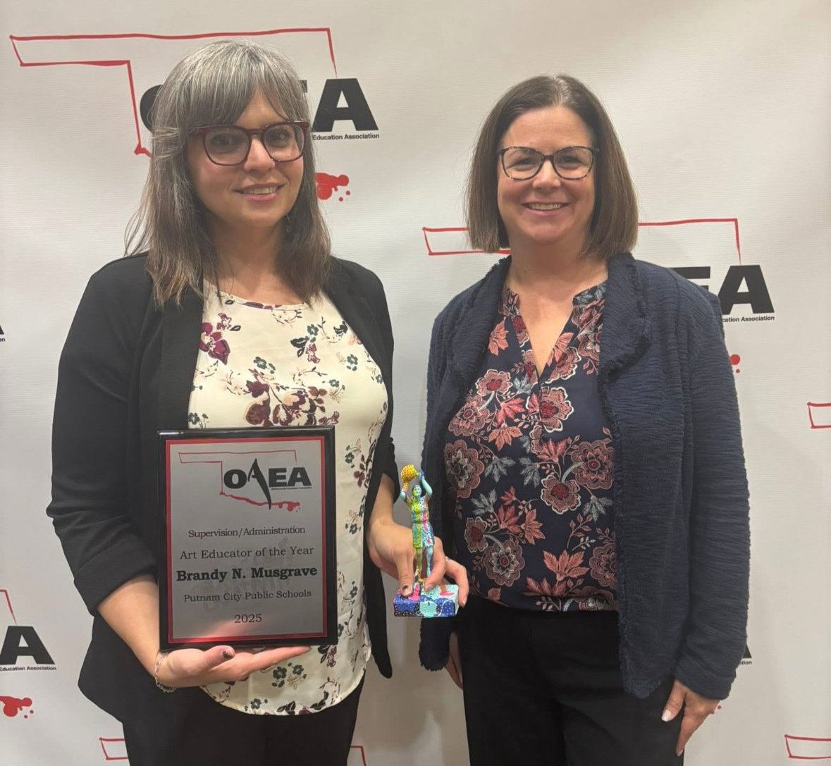 Additionally, we honor Ms. Brandy Musgrave, District Fine Arts Coordinator, for being named the Oklahoma Art Education Association Administrator of the Year. Her vision and advocacy continue to enrich our fine arts programs and expand opportunities for students across our District.